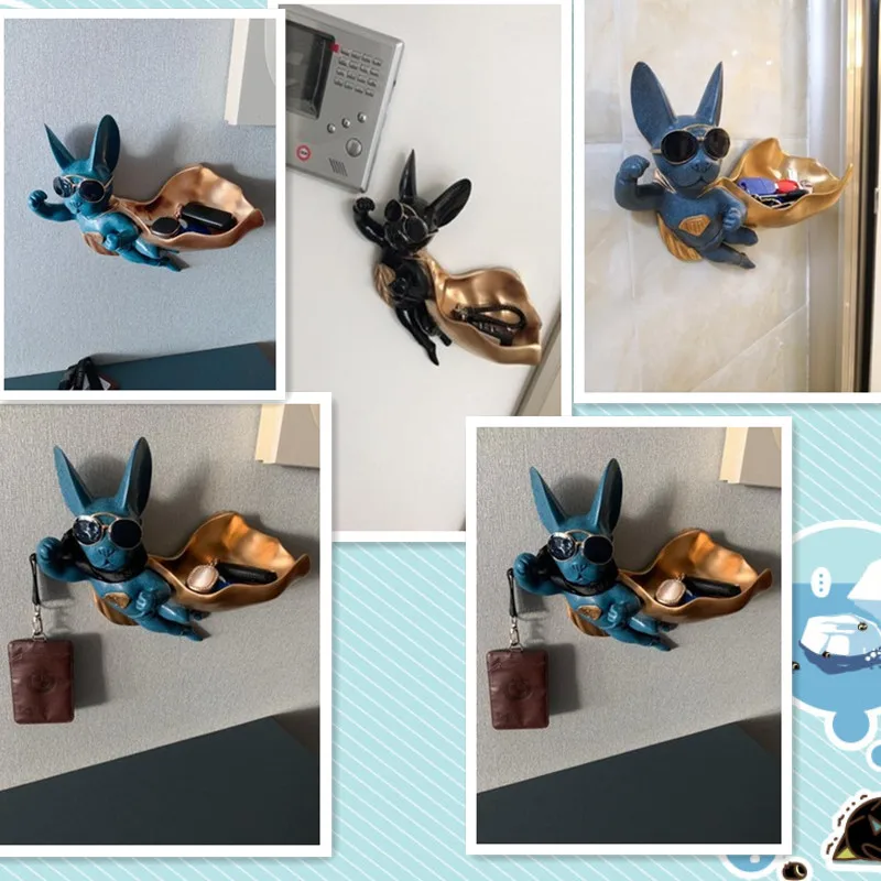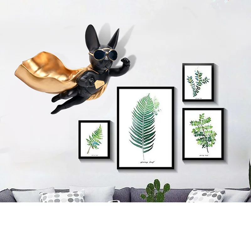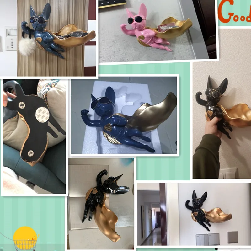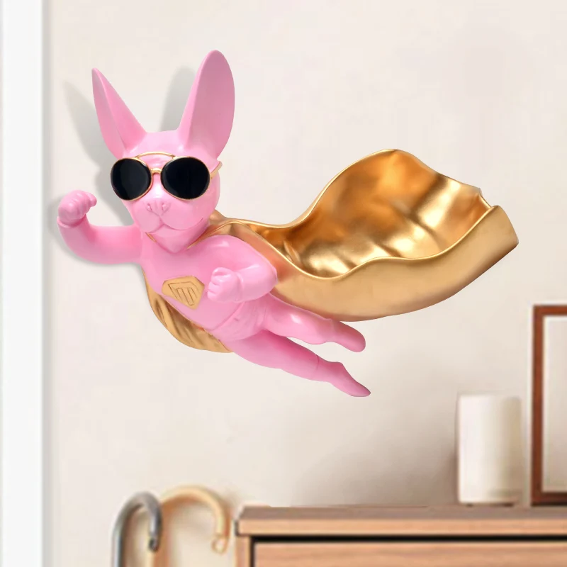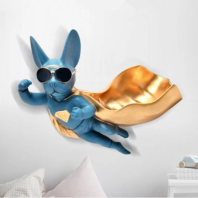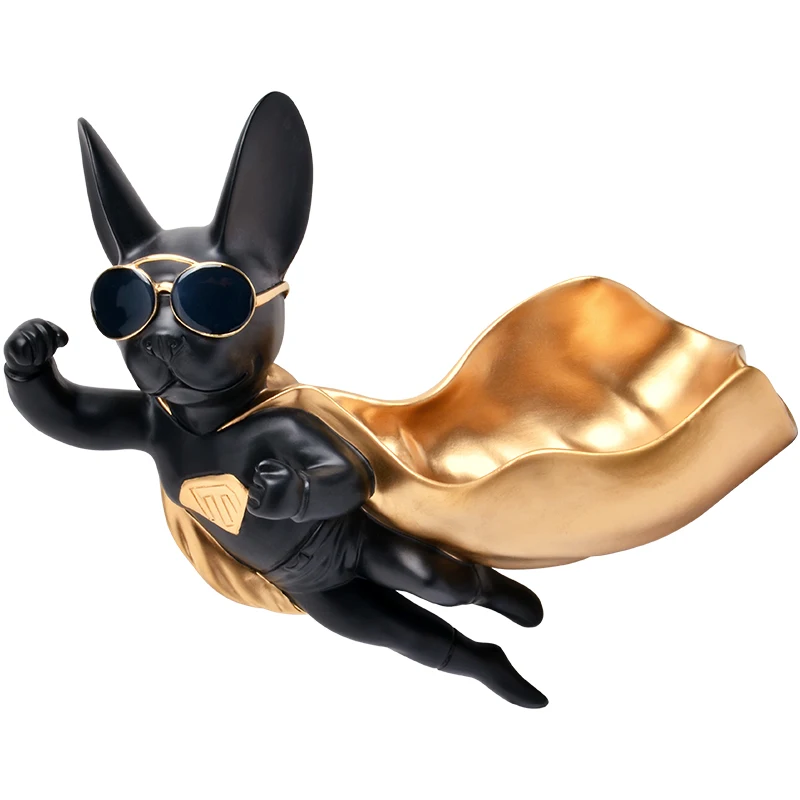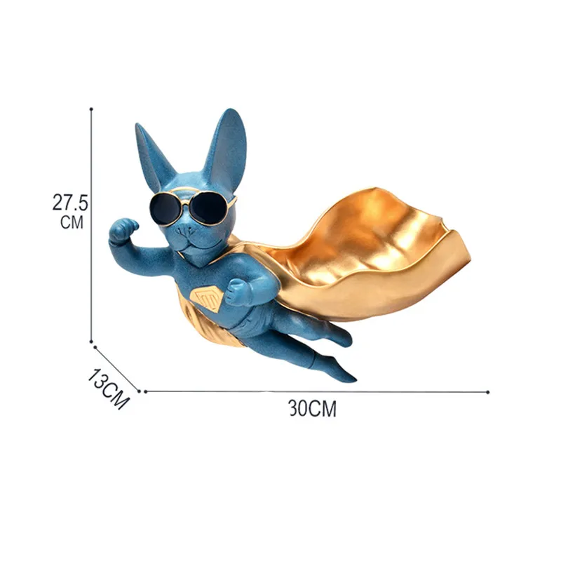 Statues / figurine de chien super-héro en polyrésine, style cartoon.